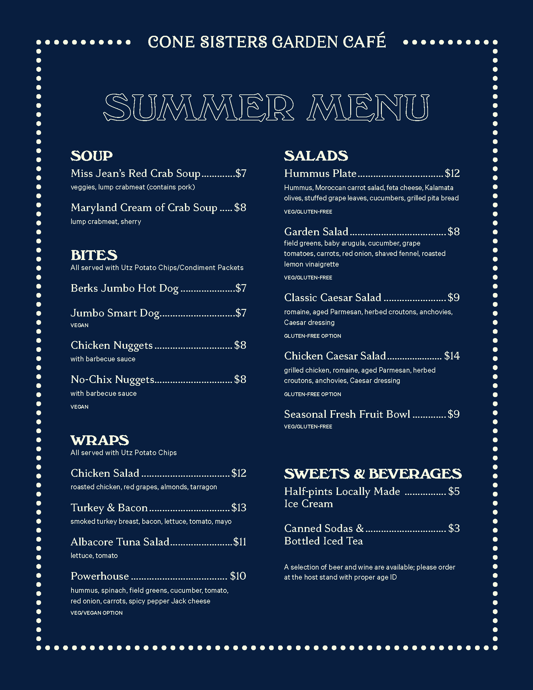 Welcome to the Cone Sisters Garden Cafe!